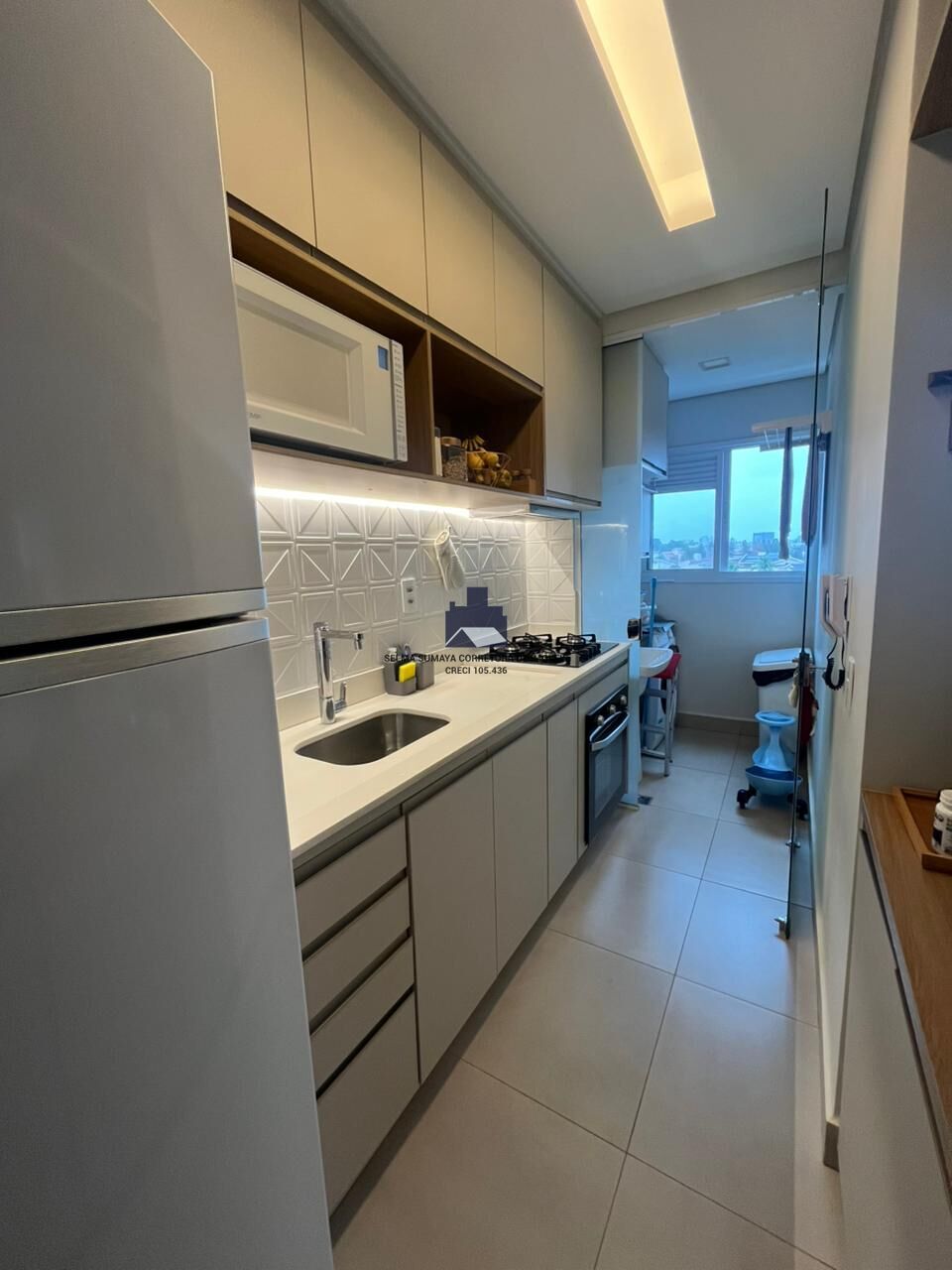 Cozinha equipada com cooktop, depurador e forno