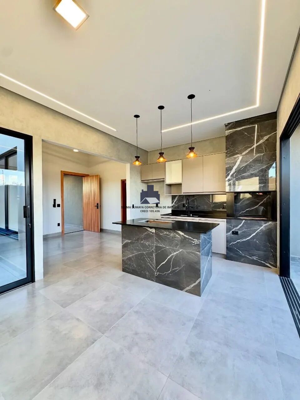 Sala de TV com pé direito duplo;