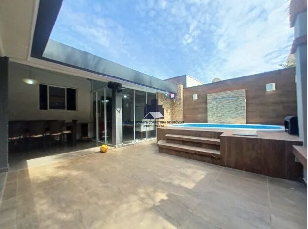 Casa no Condomínio Athenas com sala 3 ambientes, 3 dormitórios sendo uma suíte, 3 banheiros, painel na sala em madeira com portas que isolam os ambientes dos quartos e cozinha, espelho na sala ,varanda gourmet, piscina com hidro, led, cascata com led e aquecida, garagem para 2 carros, ar condicionado na suíte do casal ventilador nos outros ambientes , cozinha com armários, despensa, lavanderia corredor lateral, jardim suspenso , quarto de despejo, rica em armários e detalhes, no jardim da frente planta frutífera, 130 m de área útil. 08/01