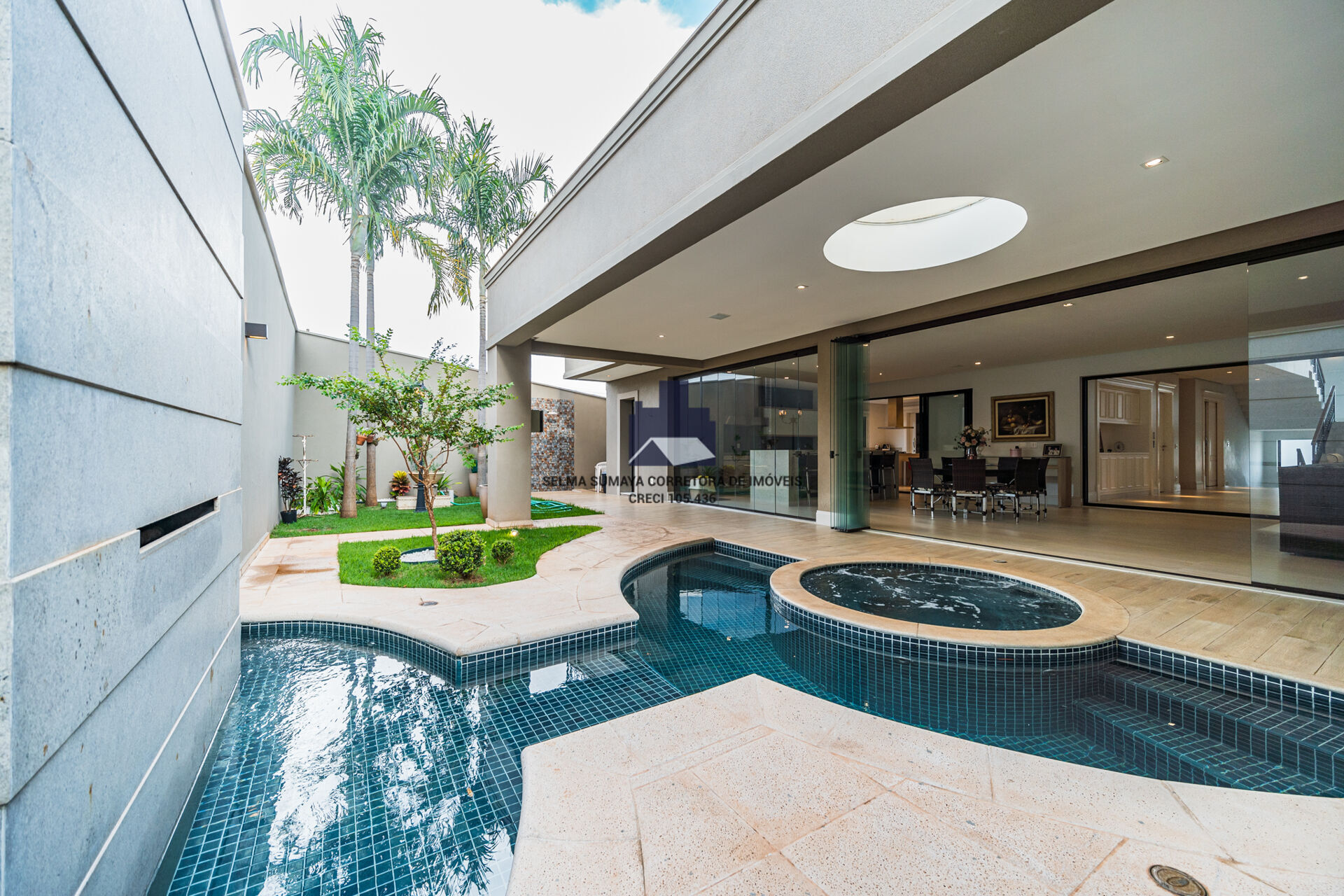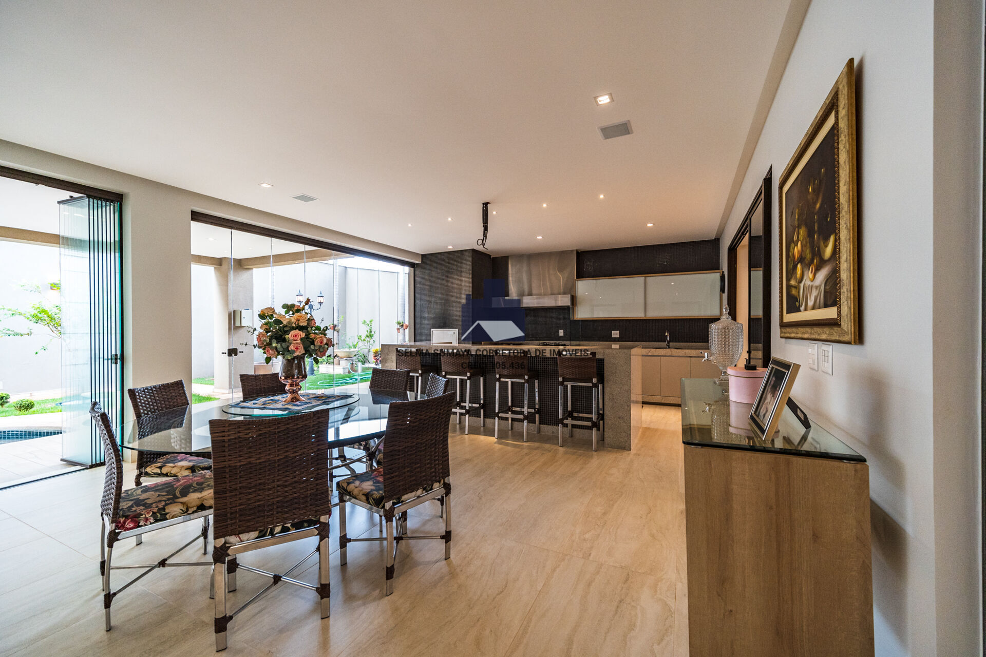 Casa magnífica e completa em uma localização privilegiada no condomínio. Excelente e moderno projeto arquitetônico por arquiteta renomada. Construída com qualidade em acabamentos e bom gosto. Paisagismo exuberante. As 4 suítes com sacadas. Amplo living com pé direito, sala de jantar e estar, copa e cozinha planejada, despensa, lavanderia, banheiro na área gourmet com balcão refrigerado. Suíte máster com closet. Sistema de som ambiente com conectividade na TV da Área gourmet. 02/26 - Ref 20240660FA