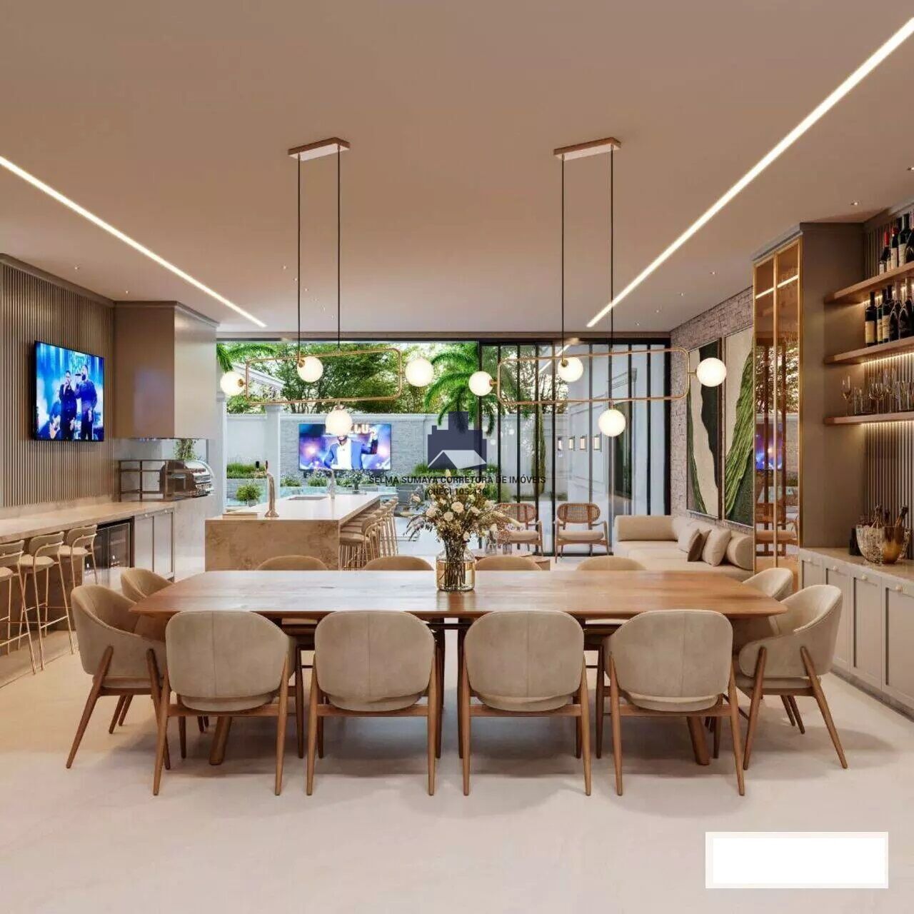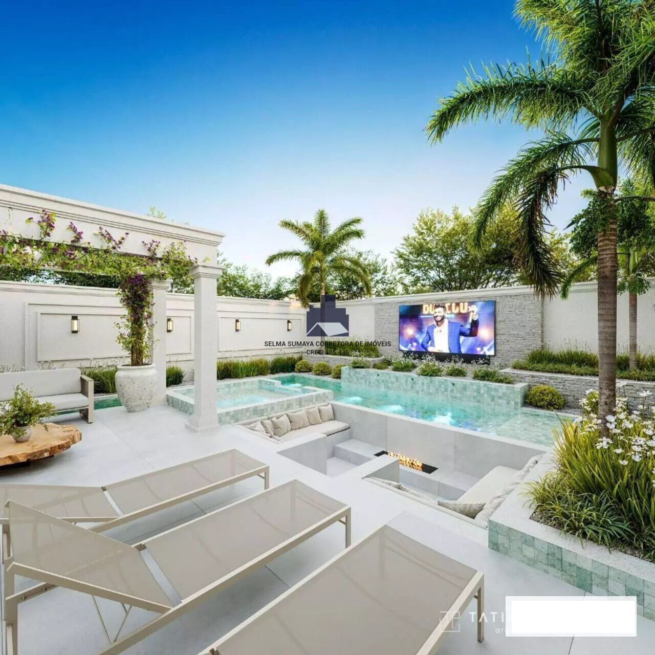 * lazer com fire pit, telão led, piscina (spa , raia e convencional aquecida com trocador de calor), pergolado e som ambiente.