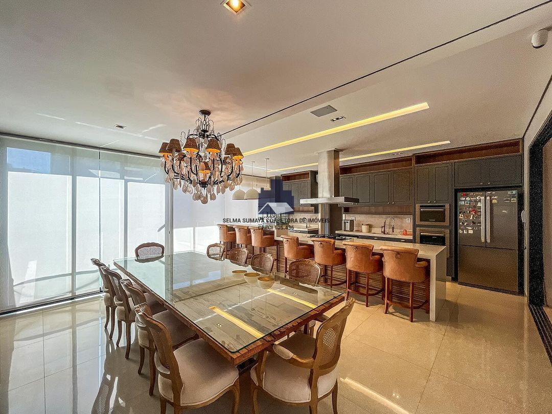 O imóvel possui 3 suítes, sendo 1 suíte master, lavabo, sala ampla para dois ambientes, home theater, cozinha planejada, área de serviço, varanda gourmet com churrasqueira e piscina aquecida.