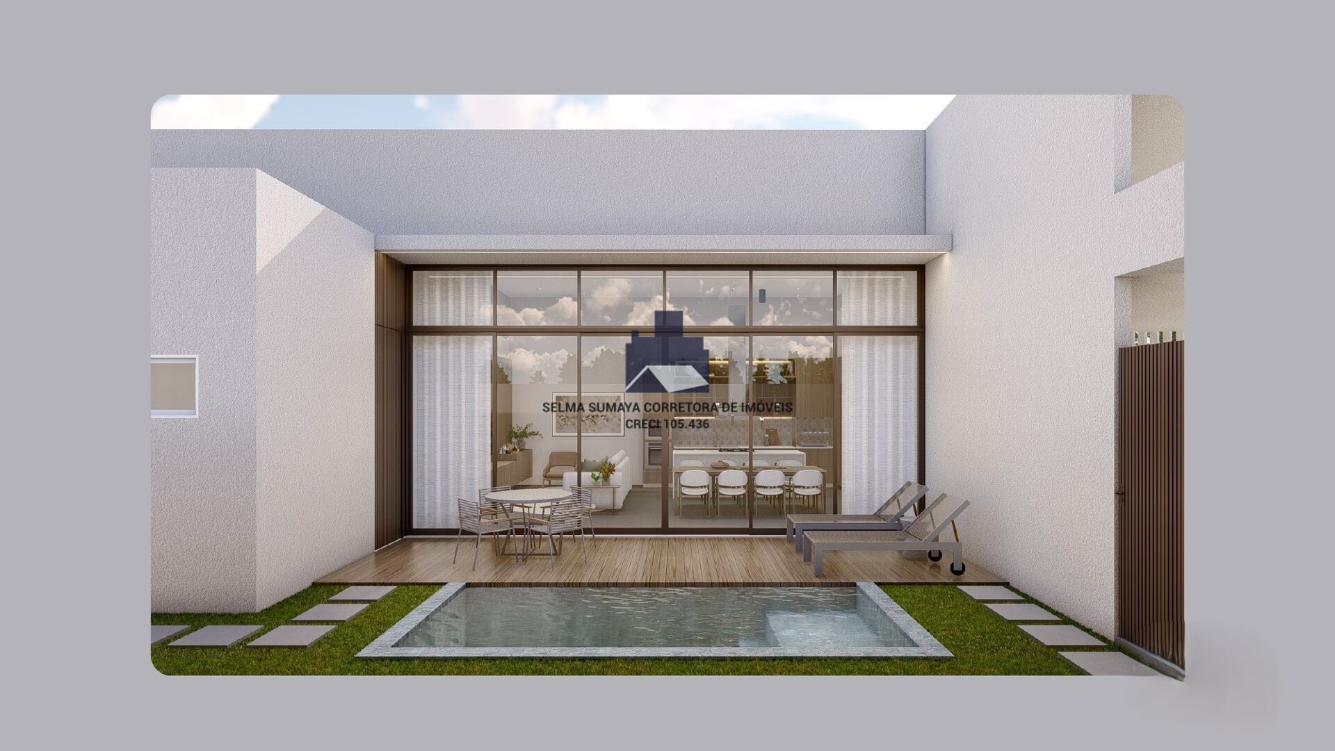 Casa em construção (previsão para agosto 2026) com 3 quartos sendo 1 suíte master com closet e 2 tipo apto, escritório, lavanderia com pátio externo e armários, área de lazer com piscina em alvenaria/azulejo, aquecida e com iluminação, deck com espaço para mesa com cadeiras, área gourmet integrada com sala de estar com pé direito duplo e ar condicionado cassete central, 190 m de construção e 304 m de terreno. 06/04