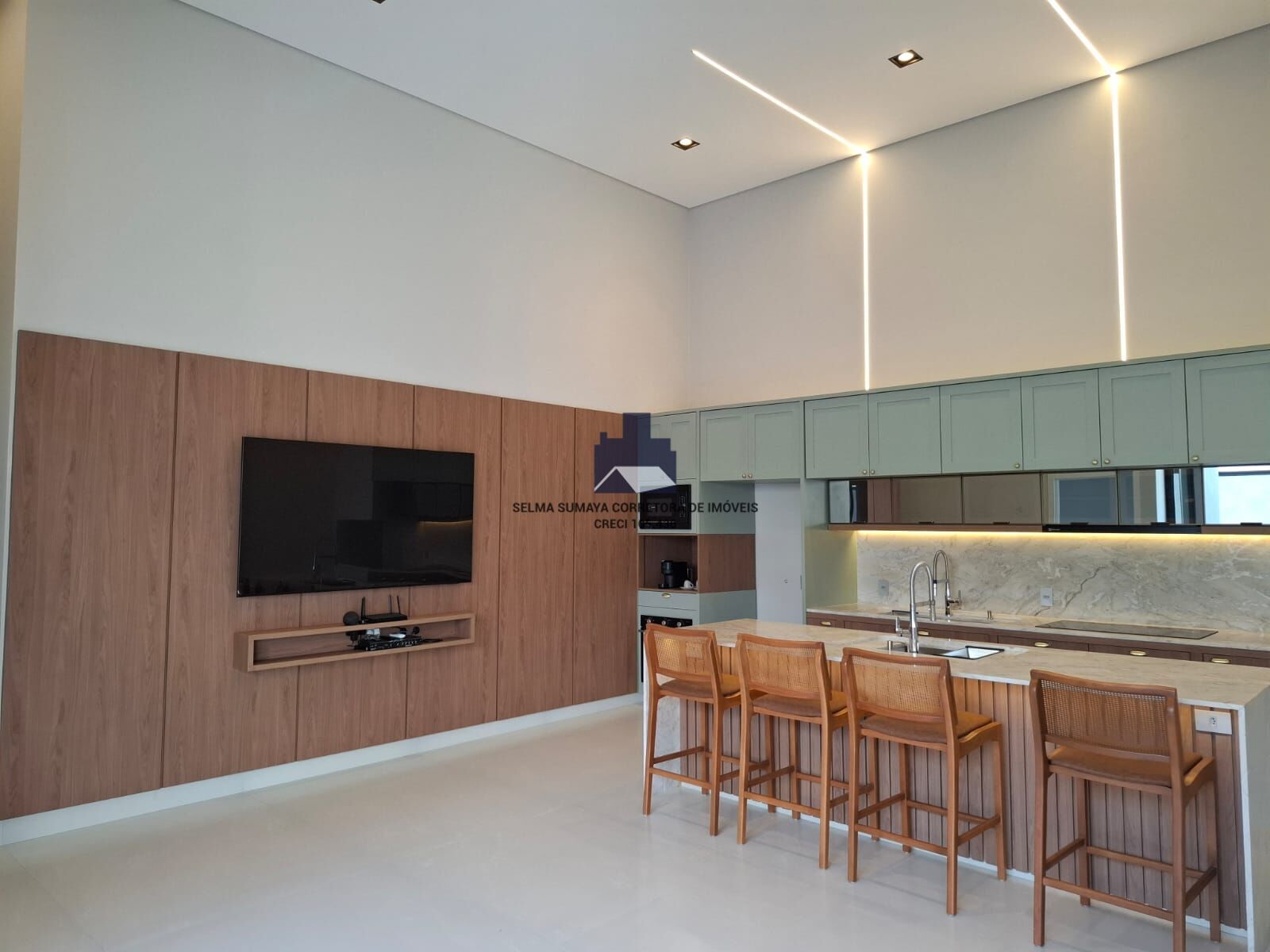 * Eletrodomésticos inclusos: cervejeira, lava-louça, lava e seca, forno, micro-ondas, cooktop de indução, cafeteira e TV 75"