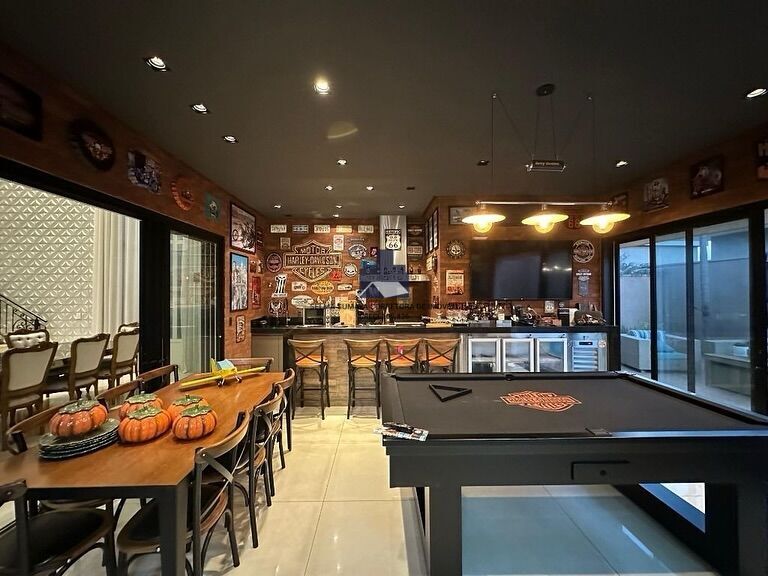 Área Gourmet, com mesa de sinuca e balcão refrigerado;