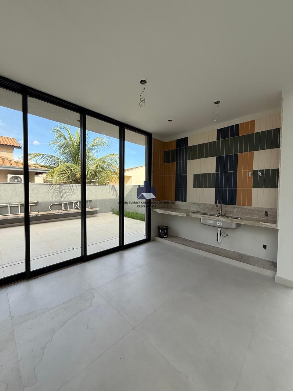 2.1.5 – Sala de Jantar integrada com sala de estar, cozinha e área externa com espaço para churrasqueira e refrigerador para vinho e cerveja 2.1.6 – Área de serviço com tanque duplo de inox e água quente e fria nas duas cubas, espaço para máquina de lavar. Bancada de apoio para roupas, armário para materiais de limpeza