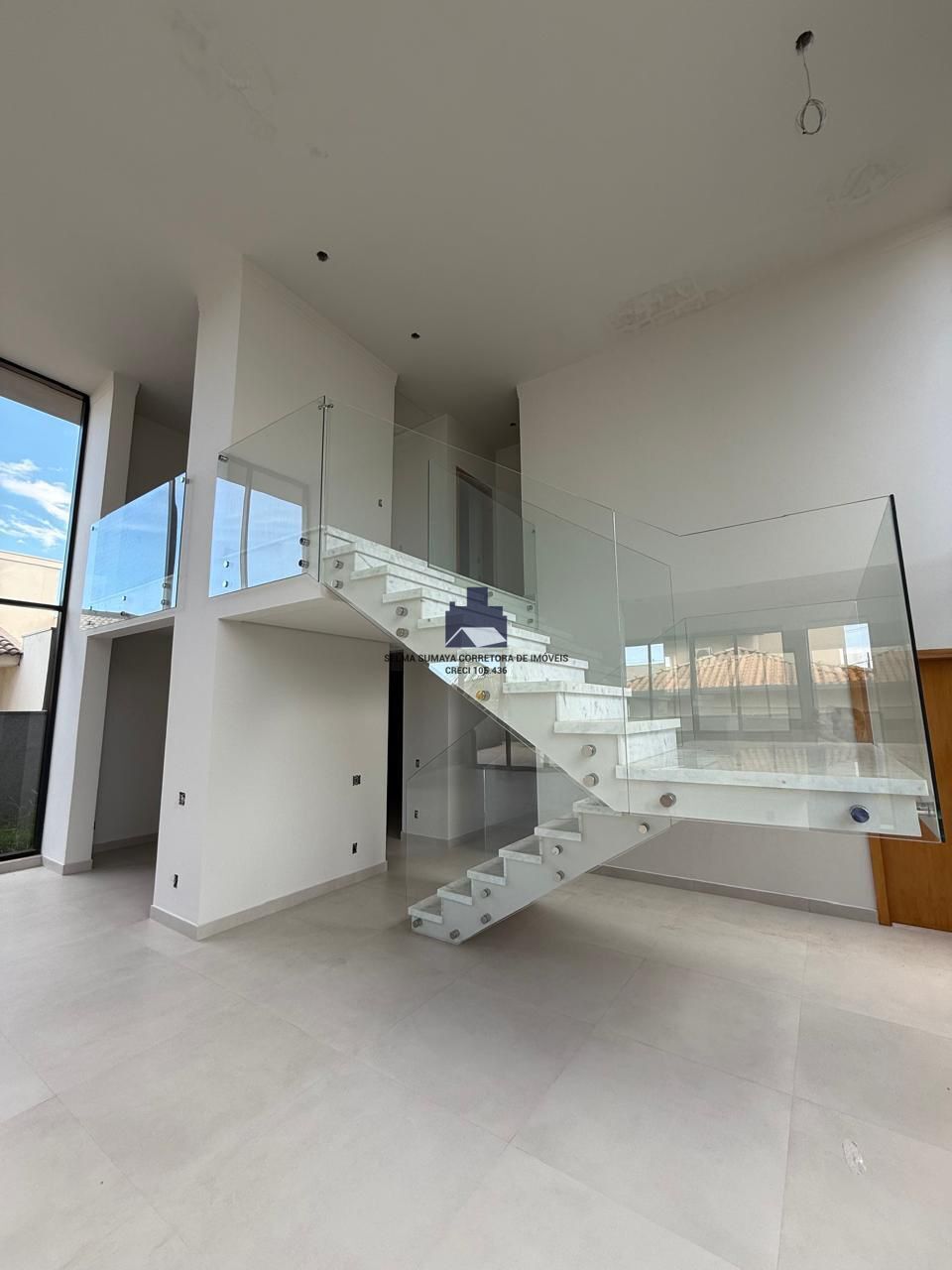 2.1.3 - Sala de estar para dois ambientes com pé direito duplo e escada de acesso ao pavimento superior
