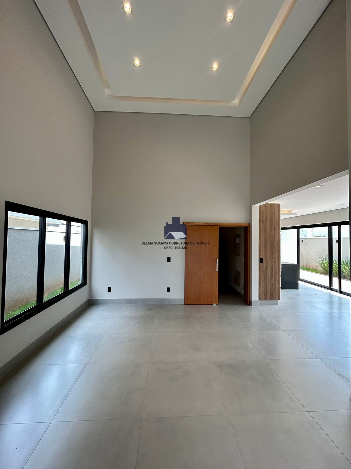 Sala ampla para dois ambientes com pé direito duplo