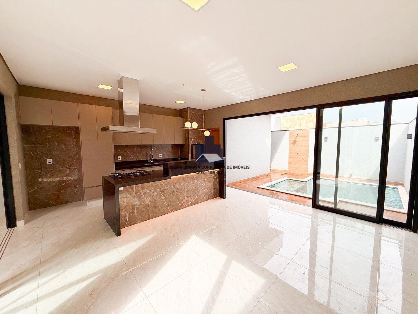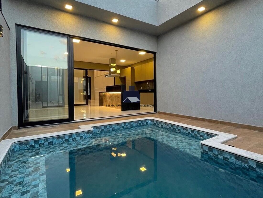 O imóvel possui 3 quartos suítes, sendo 1 suíte master, lavabo, escritório, sala ampla para dois ambientes, cozinha planejada, área de serviço, varanda gourmet com churrasqueira e piscina.