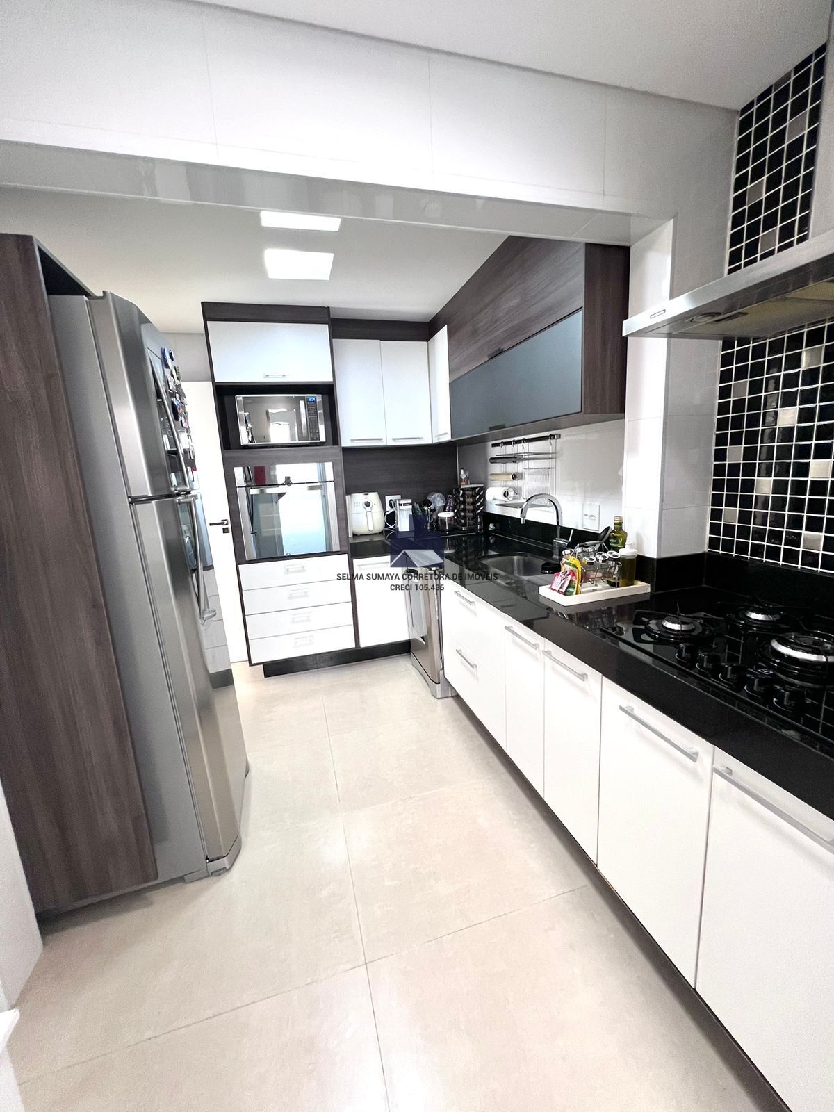 Possui 2 quartos sendo 1 suíte com closet, 2 banheiros e 1 lavado, sala 3 ambientes, iluminação toda em Led, ar condicionado em todos os ambientes, água quente em todas as torneiras, cortinas e persianas, cozinha equipada com coifa e cook top, espaço gourmet com ar-condicionado, churrasqueira, balcão refrigerado com adega de vinho, corredor para entrada de funcionários, lavanderia rica em armários e tábua de passar roupa embutida, lustres de cristal na sala na suíte e no lavabo!