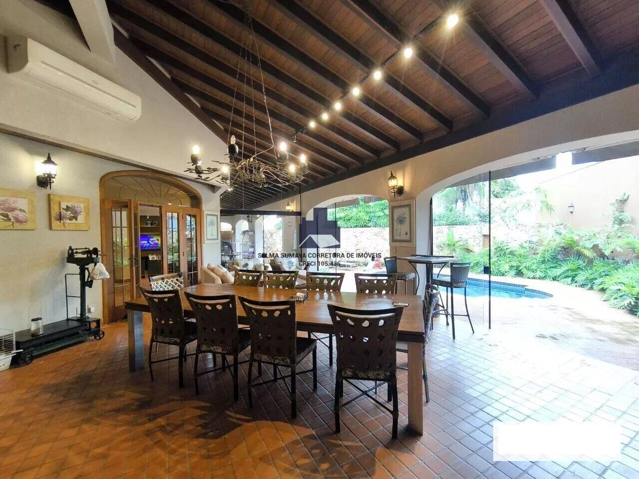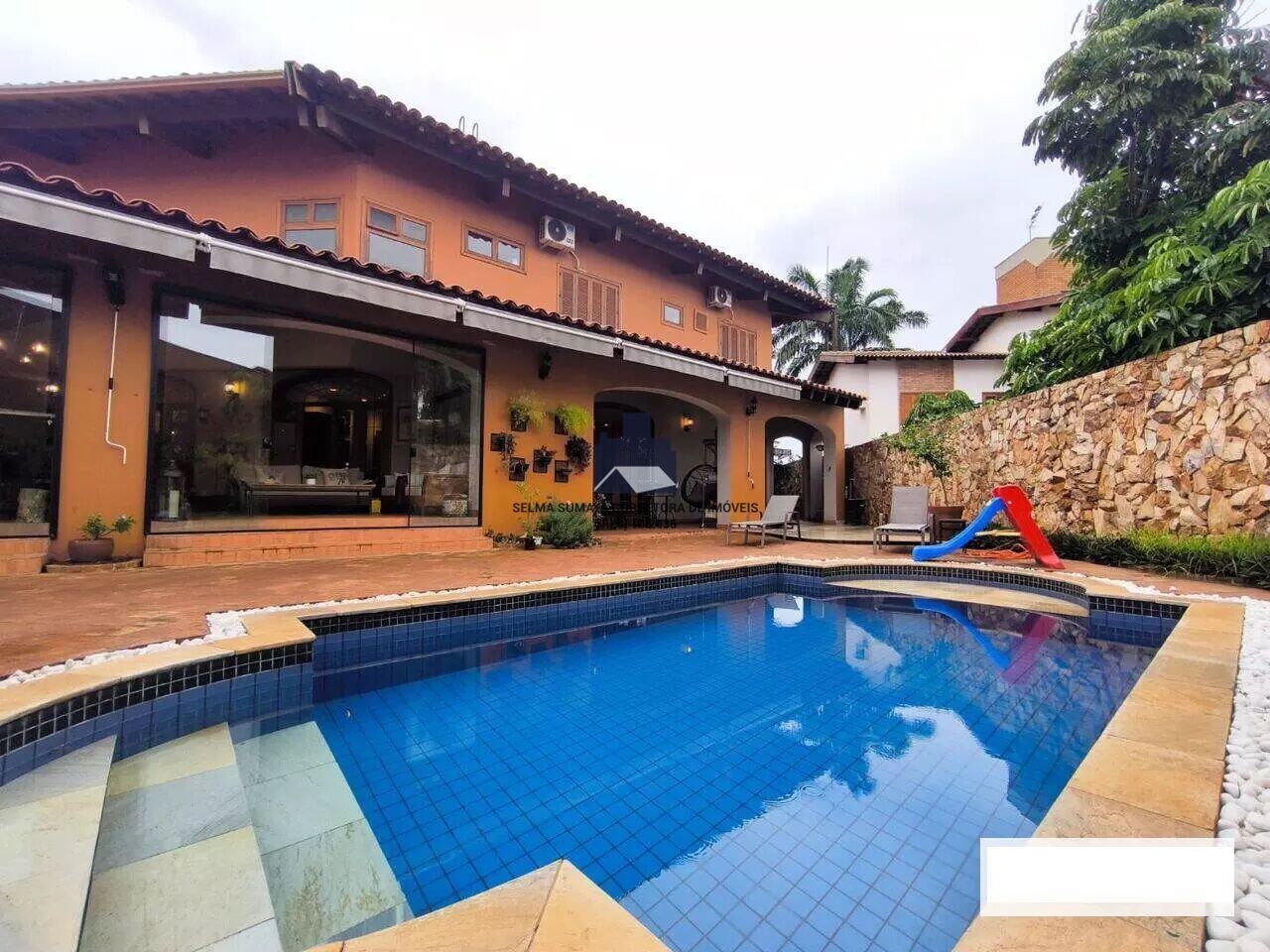 Casa no Condomínio Village Santa Helena estilo Toscano, piscina, sala 2 ambientes, varanda Gourmet, cozinha interna e externa, escada colonial, home copa, roupeiro, 1 suíte master, 3 quartos suítes, escritório, lavabo, charutaria, adega, sala de cinema, 6 vagas sendo 3 cobertas, 550 m de construção e 700 m de terreno. 11/25 - Ref 20250098FM