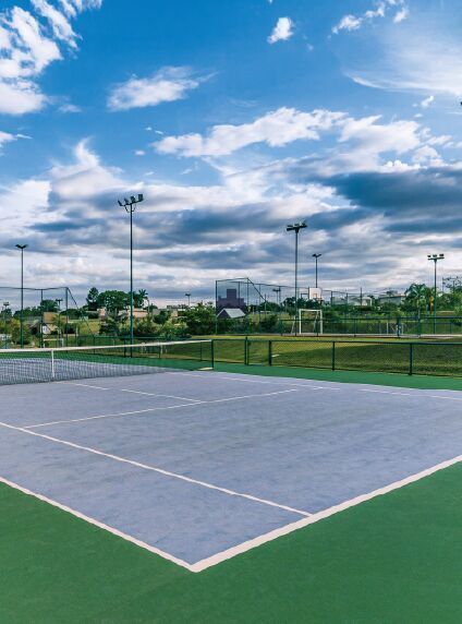 Academia de ginásticaCampo de futebol gramadoCerca elétricaChurrasqueiraInterfoneLanchonetePiscina adultoPista de caminhadaPlaygroundPortaria 24 horasPorteiro eletrônicoPortão ElétricoQuadra de areiaQuadra de tênisQuadra poliesportivaRonda motorizadaSalão de festas